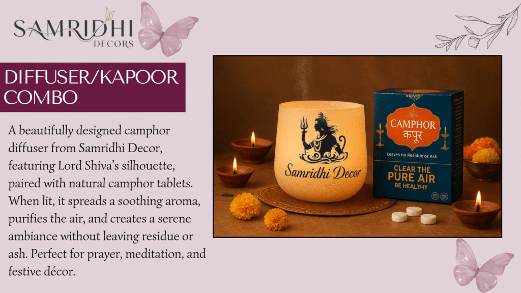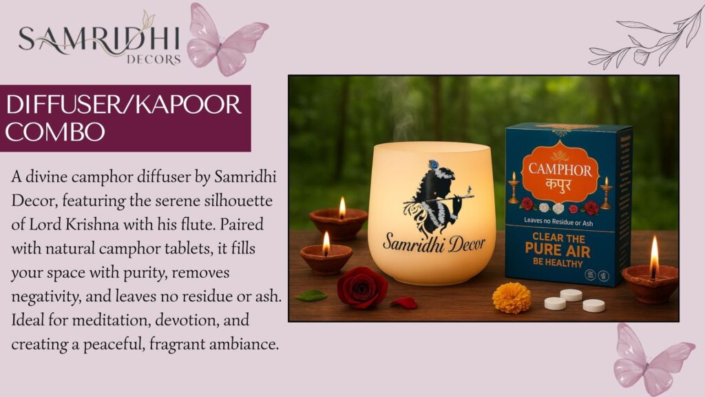 Our Categories Kapur/ Camphor Living Decor Diffuser Combo Bedroom Decor Diffuser High-Quality Products Premium. Proven. Perfect Secure Payments Trusted by Razorpay. Reliable Delivery Product Deliver in 2-5 Days. Customer Support 24*7 support to your issues The Hottest Picks of the Season. Sale! Diffuser Wooden Camphor Diffuser ₹599.00 Original price was: ₹599.00.₹249.00Current price is: ₹249.00. Rated 0 out of 5Add to cart Sale! Diffuser Samridhi Wooden Kapoor Dani With Camphor 250gm ₹799.00 Original price was: ₹799.00.₹499.00Current price is: ₹499.00. Rated 0 out of 5Add to cart Diffuser Samridhi Shiv Night Lamp Kapoor Dani ₹499.00 Rated 0 out of 5Add to cart Sale! Diffuser Samridhi Night Lamp Kapoor Dani With Camphor 250gm ₹799.00 Original price was: ₹799.00.₹499.00Current price is: ₹499.00. Rated 0 out of 5Add to cart Diffuser Samridhi Night Lamp Camphor Diffuser With Camphor 250gm ₹1,999.00 Rated 0 out of 5Select options This product has multiple variants. The options may be chosen on the product page View All For the Love of Faith & Beauty Sale! Bedroom Decor Samridhi Quote Photo Frame ₹1,299.00 Original price was: ₹1,299.00.₹799.00Current price is: ₹799.00. Rated 0 out of 5Add to cart Sale! Home Decor Samridhi Lord Ganesha Statue ₹8,999.00 Original price was: ₹8,999.00.₹4,999.00Current price is: ₹4,999.00. Rated 0 out of 5Add to cart Sale! Bedroom Decor Samridhi Aroma Diffusor For Bedroom ₹5,999.00 Original price was: ₹5,999.00.₹2,999.00Current price is: ₹2,999.00. Rated 0 out of 5Add to cart View All Perfect Blend of Style & Spirituality. Here’s what people are saying. The pooja décor I bought is simply beautiful. It has added a peaceful and elegant vibe to my mandir corner. Highly recommended! Neha RawatCustomer Every piece feels thoughtfully made. My guests always notice and compliment my pooja space now. Rakesh KumarCustomer From the materials to the finish, everything feels premium. It truly enhances the prayer experience. RitikaCustomer The designs are unique, and delivery was quick. My home feels more positive and welcoming. PuravCustomer